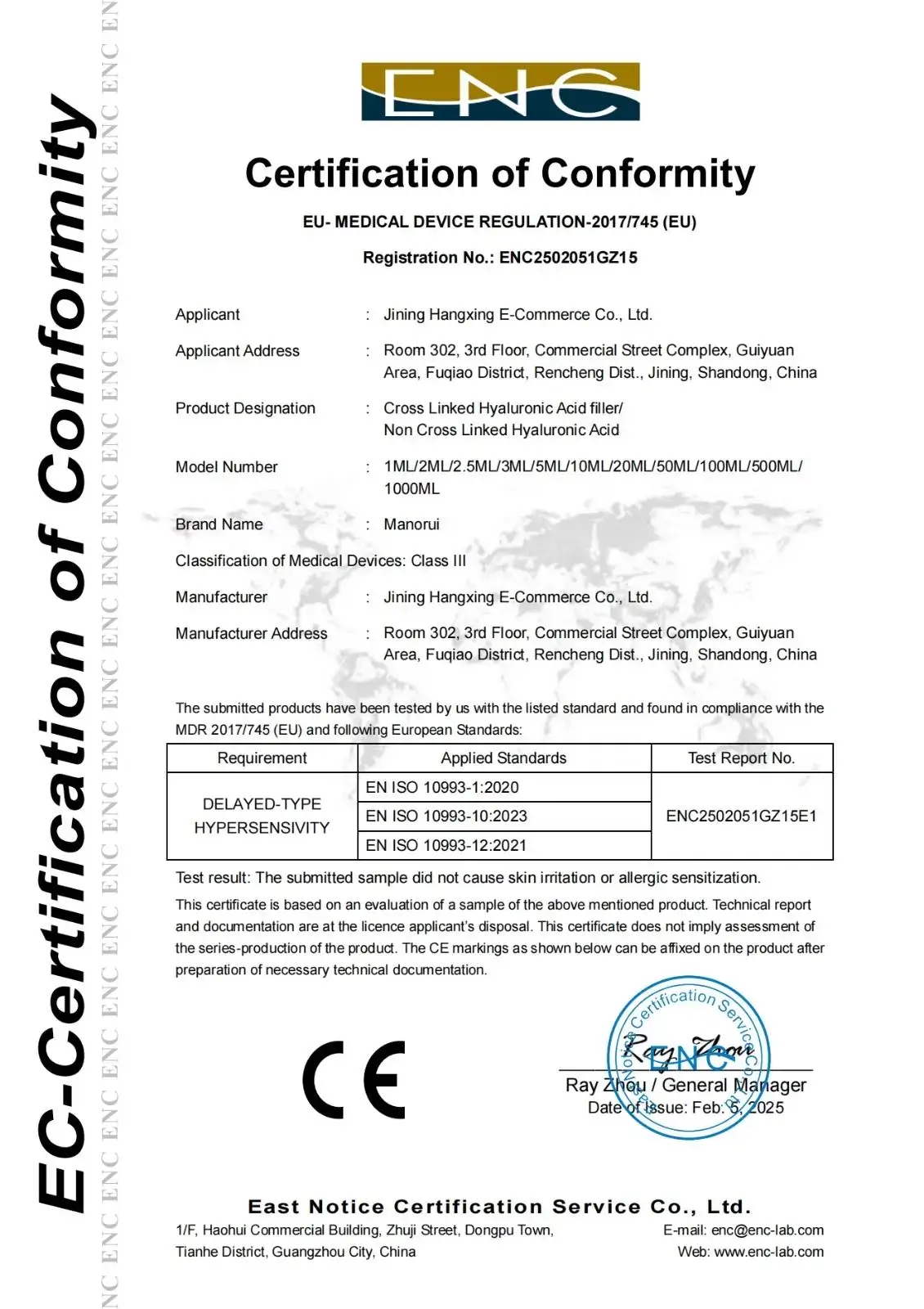 - MANORUI Medical sodium Hyaluronic acid filler.